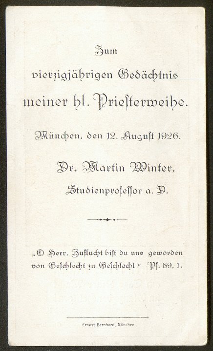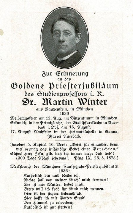 Winter Martin 27.09.1886-02.03.1946  Mein Opa Winter Martin Dr. 14.07.1862-05.02.1938 Winter Martin Dr. 50.Priesterjubilaeum 1886-1936 Winter Martin Dr. erste Messopfer 17.08.1886