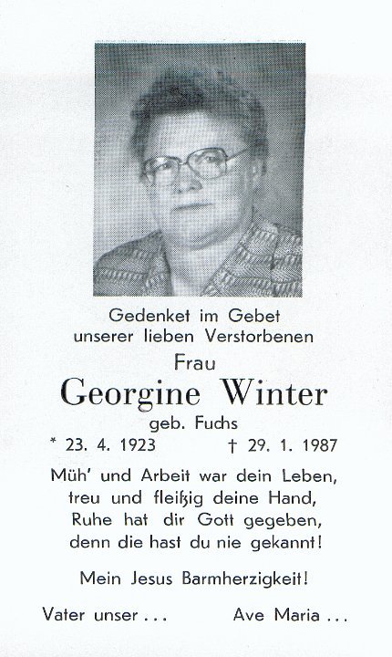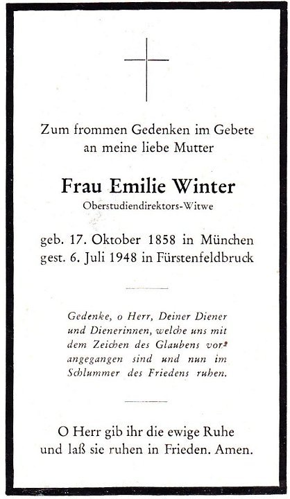 Winter Emilie geb. Giehrl 17.10.1858-06.07.1948 Winter Franz 07.01.1930-11.08.2015 SB Winter Georgine geb Fuchs 23.04.1923-29.01.1987  Meine Mutter Winter Hans Dr. 11.04.1853-17.11.1931