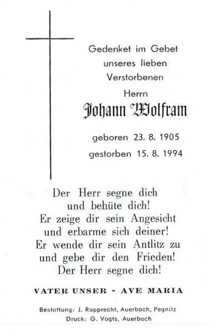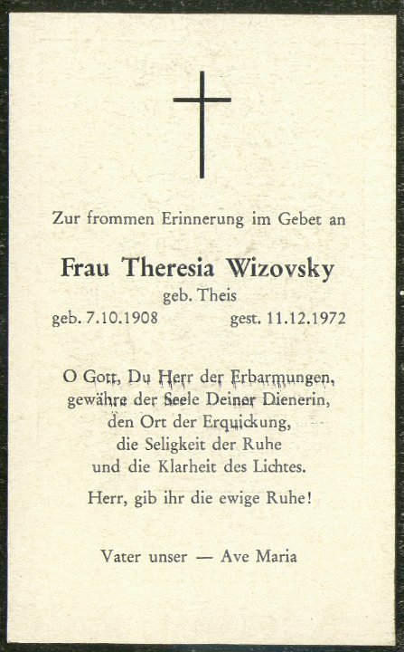 Wittmann Hans 10.07.1955-11.02.2008 Wittmann Simon 08.12.1919-19.11.1973 Wizovsky Theresia geb Theis 07.10.1908-11.12.1972 Wolfram Johann 23.08.1905 - 15.08.1994 SB